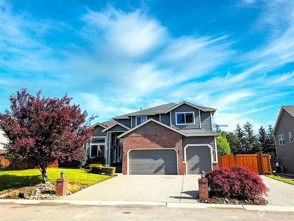 Grandview Ridge 2-Story Featuring: 3238 sqft, 4 beds, 2.5 baths, huge bonus rm/optional 5th bedrm, office, vaulted Formal Living connects to Formal Dining (coffered ceiling, wainscoting). Great Rm - Kitchen w/eating area, island, WI pantry, double oven, newer SS apps, gas cooktop, granite, hardwoods, tech desk - opens to spacious BY & fam rm w/gas FP. Primary ensuite w/sitting area, double sided gas FP, fully remodeled bth w/custom tile, counters, soaking tub, double shower heads & WI closet. Fully fenced BY w/hot tub, gazebo, gas, sprinklers, 55' RV/boat parking, play area. A/C & heat pump, oversized 3 car garage w/9' bay & storage. GVR is a gated comm w/park, MR views, mins to Lake Tapps & Lakeland amenities + award winning Dieringer SD..