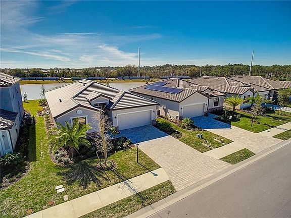 Incredible Lake Views! This brand new Trevi model is waiting for you to call it home. Walk in and feel amazed at how large this home feels. Unwind in the spacious master suite, which includes a large bedroom, over-sized walk-in closet, and dual-sink bath with linen cabinet, large enclosed shower, and water closet. The gourmet kitchen features a center island and opens to a dining nook and the family room. Once your done cooking for everyone take it outside and enjoy your spacious enclosed Lanai. Polo Run is a brand new SOLAR powered community in Lakewood Ranch, the first of its kind here. This gated maintenance free community offers easy access to all that Lakewood Ranch has to offer! Come see this incredible pool home today.