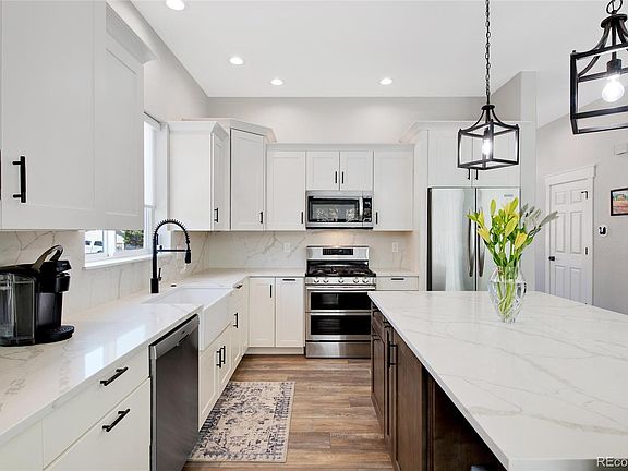 Stunning, completely remodeled ranch in coved Stonegate! You are greeted by the luxury vinyl flooring that graces most of the main level. The gourmet kitchen shines with beautiful quartz counters, large center island with seating, stainless appliances, walk in pantry and a farm sink. Just imagine cooking up the delicious meal or entertaining family friends. The kitchen is open the inviting family room with cozy fireplace. All this with access to your awesome trex deck and private yard! Talk about Colorado living at its finest. The primary suite has a luxurious full bath and walk in closet, the ideal place to kick start your day or relax after a productive one. There are an additional 2 more bedrooms and spa like full bath as well on the main level. The laundry and mud room lead to the great 2 car garage. The full basement has tall ceilings and is ready for you to finish to fit your dreams! This is the dream home you have been waiting for ideally nestled on this corner lot!! This home is conveniently located within minutes of shopping, entertainment, 470 and 1-25, as well as, downtown Parker! Welcome Home!