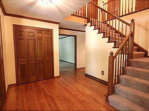 Back on market due to buyer only. Loads of space for this price! Over 3,000 square feet plus a large finished walk-out lower level on a very beautiful wooded cul de sac of high-end homes. Open floor plan, lots of wood flooring, and a beautiful stone fireplace in family room. Spacious kitchen has a large island, Corian counter tops, and new stainless steel appliances. The huge addition on the back of home with beautiful windows overlooking the wooded backyard is a big bonus! Yard has many landscaped beds full of perennials. Living room, dining room, and stairs have brand new carpeting. This is a very quality-built home.