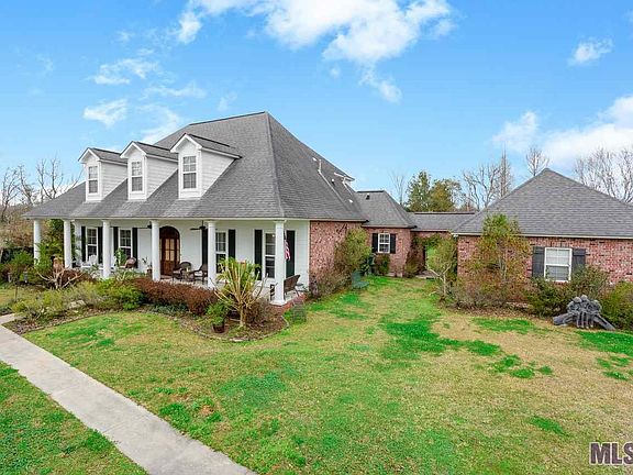 TRULY COUNTRY LIVING AT ITS BEST! 4 Bedroom, 3.5 Bath Home with Study and Media Room. Enjoy this custom-built home on secluded .83 acre lot with its Acadian Charm. Upon entering, you'll observe a wonderful open floor plan with beautiful wood floors from the foyer, dining room, study, family room/den and into the master bedroom. The study is off the front entrance with a half bath. The formal dining room is spacious with extra millwork. The family room/den features a grand stone fireplace, furniture-style cabinets with windows along the back wall for natural lighting. The kitchen is a Gourmet's Delight full of amenities, menu desk, top-of-the-line Frigidaire stainless appliances, including an custom oversized refrigerator/Freezer, slab granite counters, beautiful walnut cabinets, under cabinet lighting, large working island, butler's pantry and walk-in pantry. The breakfast area is open to the kitchen with a door leading onto the patio area. Situated off the kitchen is the laundry with sink and lots of cabinets. The luxurious master suite features spacious bedroom with views of the backyard, two vanity areas with furniture-style cabinets and marble counters, 6-foot whirlpool tub, custom walk-in shower with body sprays, and a huge closet, 20 x 7, with built-ins. The staircase off the foyer is made of wrought iron leading up to the media room/game room. There's two bedrooms with adjoining bath and two vanity areas on one side, and another bedroom and bath on the other. There's storage throughout the home, and the closets are all spacious. Enjoy relaxing evenings on the oversized porch with its excellent appeal. This home is centrally located with easy access to I-10 and Airline Highway. Call today to schedule your private showing.