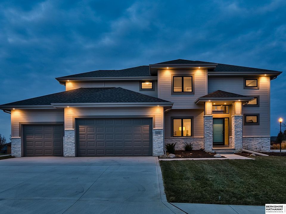 Trademark Homes Franklin III plan will be move in ready February 2024. This 2-story home is 4BR, 3BA with a 4 car garage. Beautiful finishes and highly desirable features like, open concept, flex room on main floor, huge pantry and covered patio. AMA per plans. Come see our Trademark Model in Ashbury Creek in Papillion at 11509 114th Ave. PICTURES ARE OF A SIMILAR PLAN, NOT THE EXACT HOME.