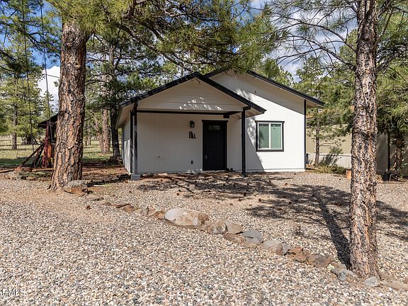 Savor your morning coffee on the back patio while deer gracefully wander through the forest. This charmingly renovated 2-bed, 2-bath home offers 1000 sq ft of functional space, featuring a spacious kitchen with a 12 ft island and an open great room. With approved plans to add a 3rd bedroom and expand the living area to nearly 1700 sq ft, this peaceful cul-de-sac in Munds Park offers a serene retreat.