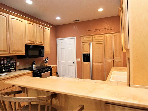 Location. Location. Location. Run! Don't walk. Custom 3 bedroom 2 bathroom home on championship golf course, next to greenbelt on a quiet cul-de-sac. This one-of-a-kind Tri-steel home with 8" deep walls & R30 insulation keep this home efficiently cool in the summer & snuggly warm in the winter. Natural sunlight fills every room. Beautiful and thoughtful details are everywhere, including maple cabinets throughout, double sinks in both bathrooms, beautiful custom built-in hutch, 8" windowsills, open floorplan concept with split bedroom design. A large portion of the backyard is fully fenced and a shed at the rear of the property provides a place for all your gardening tools. This home backs up to a greenbelt, the golf course, and a pond, and has easy access to the club house and restaurant. Don't miss out on THIS one! Tee UP! Make an appointment to view 17025 Casper Rd...TODAY!