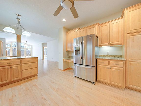 Beautiful remodeled rambler style townhome in the lovely Rock Island Association. Home is an estate sale so seller did not live in property. New air to air exchanger 3/21, new water softener 3/21. Open and airy with lots of sunlight. Middle unit, private views in backyard. Vaulted ceilings, main level laundry/mudroom, gourmet stainless steel appliances, granite countertops, tile backsplash in kitchen, new lighting, new carpet on main level, maple hardwood floors, cabinets and trim. Enormous master bath with Jacuzzi tub and separate walk in tiled shower. Lower level great room with wet bar and a huge storage room! Timeless color palette with professional plaster and faux finishes. Two fireplaces with walk out basement. Convenient location! Hurry, these homes in Rock Island go fast!