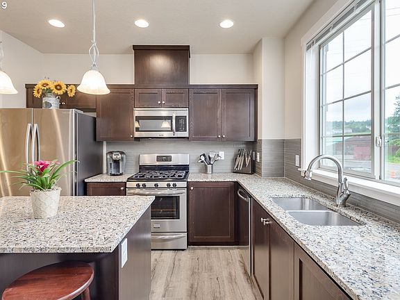 - Appliances: Dishwasher, Built-in Microwave, Garbage Disposal, Plumbed For Ice Maker, Stainless Steel Appliance(s), Free-Standing Range, Island, Tile, Granite, Gas Appliances