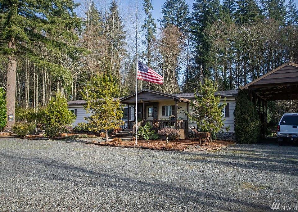 Private Waterfront View: "Holds a Secret". 2 acres of country peace & quiet. Large man-made Pond w/dock & bridge. Meandering trails. Oversize patio w/glass enclosed gazebo. Watch year round wild life. Large garage & shop w/storage, 220 hook-up, wood stove. Enclosed/covered dog kennel, chicken coop, wood storage. Covered 18 x 40 RV parking w/electrical hook-up. Lot's of Level parking. Spacious 3 Bdrm, 2 full baths, updated mobile, & new metal roof. 10 min. I-5, Zoned H.D.R. Arlington City limits.