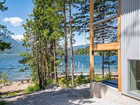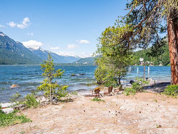 A beautiful modern twist on the Lake Wenatchee waterfront home! This impressive 2+ bedroom, 3-bath, 2,450sf home offers some of the best views on the entire lake with 9 foot ceilings and corner-to-corner windows. The beautiful open kitchen features a large center island and induction range; the living room can function large or small depending on your needs, with a wood stove and stone accent wall. Everything you need is truly on the main floor, including the master bedroom, laundry, and guest bath. Downstairs is a huge family room, guest bedroom, and spacious bonus room (office or extra sleeping area). Easy access down to the lake, a combination of sandy beach and rugged natural shoreline, and a L-shaped breakwater that provides nice protection from the waves.