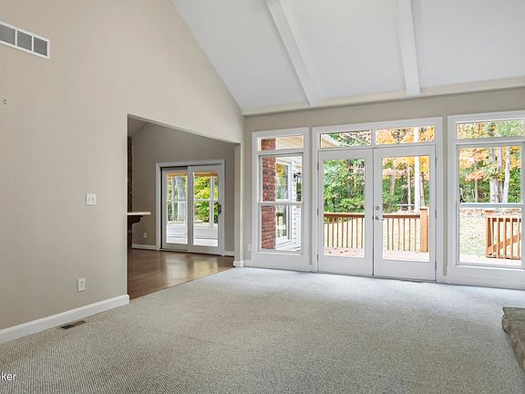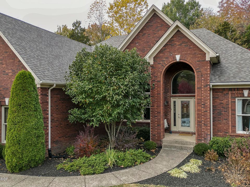 Gorgeous RANCH home on a private lot close to the Parklands of Floyds Fork in East Louisville. This four bedroom/three full bath home offers many desirable features including an open floor plan, soaring vaulted ceilings, beautiful slate and hardwood flooring, architecturally unique details throughout and a brand new roof. Be wowed by the dramatic entryway, open to the formal dining room. The living room features a fabulous floor to ceiling stone fireplace, flanked on both sides by lovely built-in shelving. The eat-in kitchen showcases abundant cabinetry, granite countertops, and stainless appliances and leads to the bright and cheerful Florida room. You can also access the sunroom from the magnificent primary suite, which features an impressive fireplace a tray ceiling and a spa-like updated full bathroom with a Jacuzzi-style tub backed by a custom stone wall, a separate shower and a double-sink vanity. The finished walk-out basement is immense and offers a large bedroom with fireplace, a full bath, a family room plus room for a home gym, play room, bonus room with closet and loads of storage. The possibilities are endless! The park-like grounds are beautifully landscaped and provide a private oasis in the wooded back yard. There is an attached two and a half car garage that leads to a mudroom with convenient first-floor laundry. This home is equipped with two year old HVAC system and water heater, an irrigation system and an electric fence outdoors. Other updates include fresh paint, new carpet, and sleek new light fixtures. Situated on a cul-de-sac in a desirable neighborhood, the location cannot be beat: close to parks, many schools, trendy restaurants and retail along Shelbyville Road. Make plans to see this marvelous home today! Quick possession available. It could very well be your new happy home!