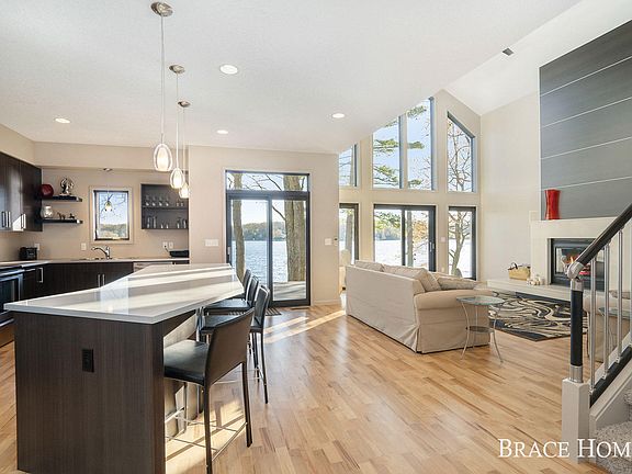 You'll Find This Lakefront Home On Youngs Lake Will Make All Of Your Modern Design Dreams Come True! Only An Hour From Grand Rapids, This Can Be Your Year Round Oasis Or Second Home For Weekend Getaways! The Owners Built This Home With Entertaining In Mind! It Features Large Open Spaces For Parties & Gatherings! Main Level Offers A Huge Contemporary Kitchen That Opens To The Vaulted Living Room With Floor to Ceiling Fireplace! The Main Level Also Includes Master Suite, Laundry & Half Bath! The Additional 3 Bedrooms + Full Bath Upstairs Is Perfect For Hosting Guests! Expansive Views Both Inside & Out + Floor to Ceiling Windows. 2 Composite Decks; One Lakeside For Prime Lake Enjoyment! Youngs Lake Is Spring Fed & Only Half Developed With Homes For Privacy!