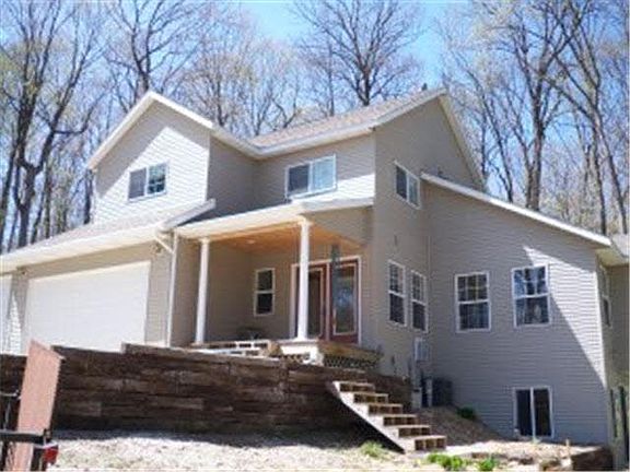 Exceptional Acreage! Beautiful 4.85 Ac +/- wooded. New home in 2006. Completely finish lower level walk out w/family room. Patio doors lead to patio outside. Open floor plan w/ cherry hdwd floors, ceramic tile, kitchen w/center island & pantry. Upper level boasts 3 bdrms - M. Bdrm w/ M. Bath & W/I closet. Enjoy 2 great fishing streams on edge of property. Motivated Seller!