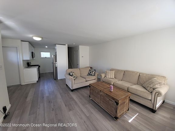Renovated, modern 3 bedroom, 2 full bath annual rental just two blocks to Belmar beach. Kitchen with granite countertops and stainless appliances including dishwasher. 3rd floor is solely for main bedroom with cathedral ceilings. Includes washer/dryer, private backyard patio, and off street parking in driveway exclusive to this unit. Apartment is furnished with beds, living room, and dining sets, as well as outdoor furniture. Furnishings are optional and can be removed. No pets, no smoking.