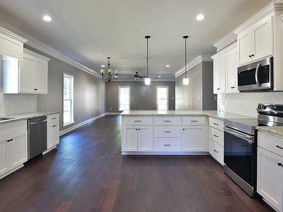 - Recessed Lighting, Granite Counters, Crown Molding, Open Floorplan, Wide Baseboard, Pantry, Kitchen Island, Walls (Sheet Rock), Office