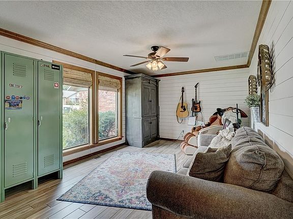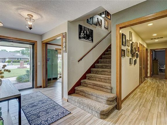 Everything you could want or need including country views right in town! This home in Grove School District is updated to reflect current style and taste, located on a cul-de-sac & backs up to a field where wildlife is plentiful. Featuring 4 true & spacious bedrooms (3 up & his/hers owners suite downstairs), extra large living room with tall vaulted ceilings & picture windows on either side of the brick fireplace plus an additional flex room with sliding barn door, remodeled(2015) & expanded kitchen with pantry, large island with quartz countertops & spacious dining room that leads out to the covered back patio for ultimate entertaining options. Outside you will find a covered patio with ceiling fans that extends to an open patio, fresh paint on the redwood fence, a storage building, plenty of grass to play and beautiful views. There is an additional storage closet upstairs off one bedroom & storm shelter in garage floor. 2 AC condensing units 5 yrs old, heating units 4 & 10yrs old.