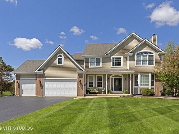 Beautiful custom home on approx 1 acre adj to Bull Valley. This updated home has all the bells & whistles that you wish for & this orig owner is super clean with no pets. Shows like a model with hardwood floors, stone fireplace in the living room, built in shelves & trey ceiling in the dining room. The Kitchen features SS Jenn-Air & Kitchen Aid appliances, double oven, 42" cabinets with uplighting, built in microwave under the gas stove top, gorgeous granite counters with sitting bar adjacent to large sunny eat in area with sliding door to back patio. Spacious Master bedroom with WIC, cathedral ceiling & luxury master bathroom featuring whirlpool tub, sep shower, & dual sinks. All 4 bedrooms on 2nd floor one with a Tandem room. Large Finished basement with family room, wet bar, gameroom & full bath, Tons of Xtra storage & WIC. Andersen windows t/o. Oversized 3 car garage with back service door leading to the prof landscaped yard with brick paver patio, flagstone walkway & mature trees.