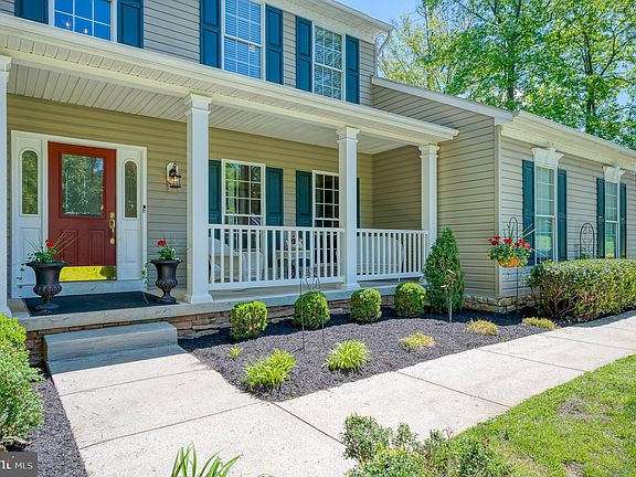 Are you searching for a beautifully appointed home on 1.24 private acres in Jarrettsville with stunning views of sunsets and sunrises! Your search is over! Original owners have meticulously maintained this Barry Andrews full front porch colonial featuring 2 story foyer, hardwood flooring in foyer, formal dining, living, family room, stairs, 2nd level hallways and all bedrooms; crown molding, chair rail and special custom moldings throughout; remodeled gourmet kitchen made for entertaining with breakfast/table area, extra-large island, granite countertops, recent stainless appliances, spacious pantry; vaulted 2 story family room just off kitchen with gas fireplace; private 1st floor office/study with French doors; 1st floor laundry/mudroom with customize cabinetry, storage pantry and sideload washer and dryer; remodeled half bath; 9 foot ceilings. The second-floor features spacious owner’s bedroom suite with 2 walk in closets and remodeled owner’s bath with double vanities with granite countertops, separate custom tiled shower and soaking tub; additional upper-level bedrooms are generous in size and offer spacious closets space; updated hall bath. The fully finished lower level welcomes a 2nd family room and recreation areas, abundant amount of storage and new slider that that leads to level backyard. The attached 2 car garage features separate area for storage and paved driveway with turn around and space for over 6+ cars. Wait till you see the oversized detached garage with separate stairs that lead to 2nd office/studio/ exercise room (you decide). The space above the garage has its own separate HVAC. The outside of this home is as impressive as the inside with recent large composite decking overlooking the level backyard. Sit back and relax while enjoying the serenity of your backyard backing to trees. This turnkey home is situated on cul-de-sac with professionally manicured lawn with tree line surrounding property. Two sheds in back yard for storing garden equipment and lawn equipment. Don’t miss this beautiful property with the neighborhood home and privacy you always wanted!