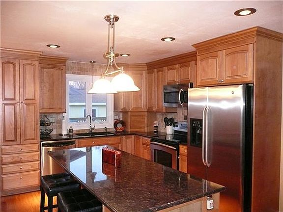 This 1.5 story colonial style home is nestled in a single street community offering a pristine location. This 4 bdrm 2 full bath home has been expanded to include an in law suite or first floor master suite with separate den. Upon entering you are greeted by a living room/dining room which offers cathedral ceilings, bamboo floors and a custom staircase. The kitchen boasts a center island, stainless steel appliances, double sinks and a separate eating area that overlooks the home's 24 x 16 deck. Off of the kitchen you are met with a family room with exposed wood beams, wood stove and double sliding doors which lend plenty of sunlight. For your convenience there is a 1st floor laundry room located off of the kitchen adjacent to a completely updated full bath. Upstairs you will find an additional master bedroom with double walk in closets and access to an updated bath with custom tile work and neutral d~~cor. Located down the hall are two more generously sized bedrooms which host sizable closet space. A two car attached garage, mature landscaping & a large shed with electric complete this meticulous home.