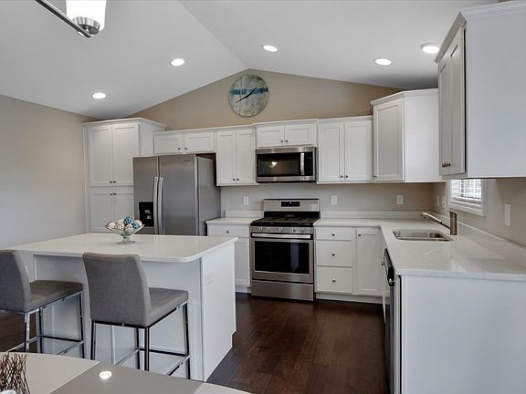 Better than new! Outstanding 3 years young with many upgrades! 3 bedroom ranch. You will be impressed with the open floor plan, SS appliances, quartz countertops, hardwood floors, fireplace with blower added for extra warmth, bullnose archways, master bedroom with newer floor & walk in closet & treyed ceiling, master bath with double sinks & walk in shower, second bedroom with cathedral ceiling, first floor laundry room, side load garage, large corner lot, spacious deck, landscaped yard, shed, tree lined backyard, coralstone landscape accents, 4 newly planted trees, brick landscape edging, built in basement storage shelves remain, basement with egress window and daylight windows, basement rough in for future bathroom, radon system. You will love this beautiful HOME!