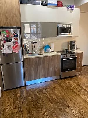 BEAUTIFUL 1 Bedroom Luxury Rental in a full amenity building!! This 1 bedroom features: - private outdoor space. - modern kitchens equipped with stainless steel appliances, including a microwave, Quartz countertops, soft close drawers & custom cabinets - 1 full tiled bathrooms features a deep soaking tub and rainfall shower head - Refinished stained,wide-plank white oak floors - Mitsubishi split systems for heating & cooling - Video intercom system The building has a trash chute on every floor and is wired for Verizon Fios. Gym, laundry room, and bicycle storage in the building! Big common roof deck with skyline views of the city Requirements: $350