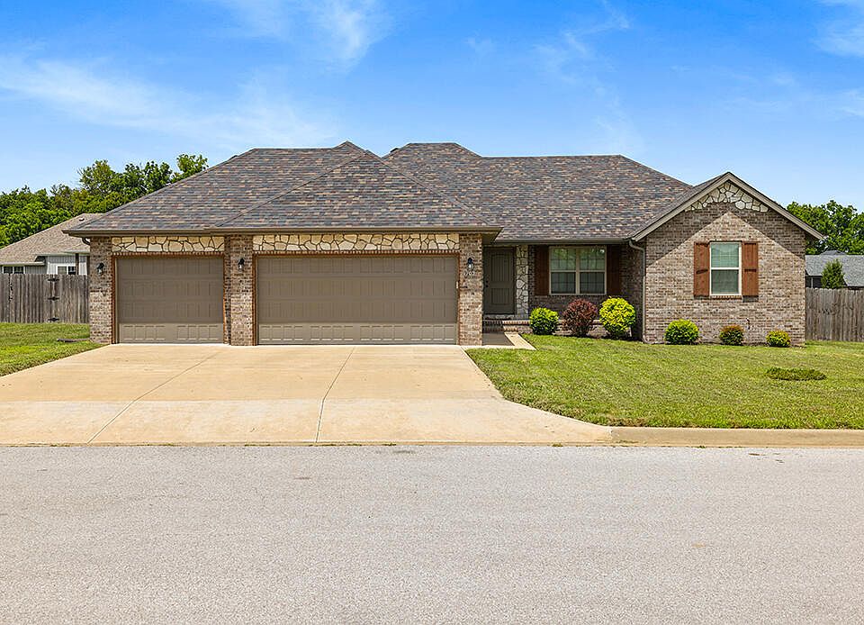 Love where you live in The Lakes at Shuyler Ridge!Built in 2020, this 3-bedroom, 2-bath home with a 3-car garage sits on a spacious corner lot in one of Republic's most desirable neighborhoods. The open floor plan features granite countertops, a large kitchen island, and abundant natural light. The generous primary suite offers dual sinks and a walk-in shower. Step out to the covered back deck -- perfect for morning coffee, evening sunsets, or hosting friends. Conveniently located near schools, shopping, dining, and neighborhood amenities, this move-in ready home truly has it all!