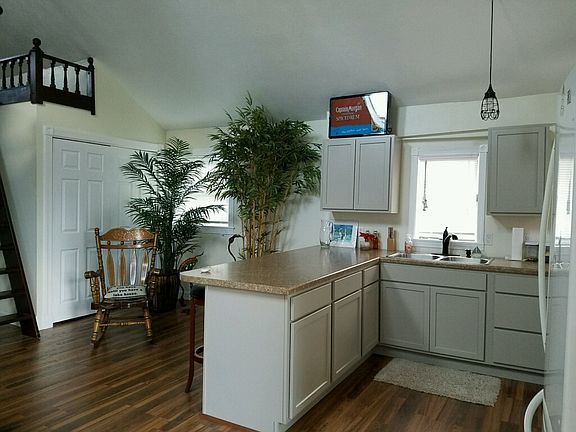 This cabin-like home features one bedroom and a loft that could be used as an office or another bedroom. Cathedral ceilings and open concept sure make this a great place to live. Corner lot on the lake with access for a jet ski or small boat. This home is a must see!!