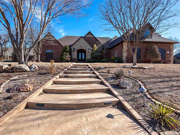 Exquisite Custom Home in Timbercreek – Luxury & Comfort Combined! Welcome to this one-owner, custom-built home in the highly sought-after Timbercreek neighborhood. Crafted with attention to detail, this exceptional residence features twelve foot ceilings, knotty alder custom cabinetry, granite countertops and luxury wood shutters throughout, creating a warm and inviting ambiance. Built to the highest standards with no detail overlooked this home is fully geothermal, state-of-the-art sound system inside and out and ideal for entertaining. The kitchen is a chef’s dream, featuring integrated appliances, a Wolf five-burner cooktop and oven, a Sub-Zero refrigerator and freezer, and a butler’s pantry equipped with an ice maker and microwave oven drawer combo. Stunning full bar with a dishwasher, sink, and mini fridge adds to the home’s entertainment appeal. Master Wing is a private retreat, boasting his & hers separate closets, trayed ceiling, gas fireplace, hidden bookshelf leading to “Family Safe” saferoom and private patio access. Master bath offers a spa-like ensuite with Steam Mist steam shower, Jetta jacuzzi tub and private toilet. A second master suite with a full bath offers additional privacy and flexibility. Upstairs, you’ll find a large game room, an additional bedroom, a full bath, and a decked walk-in attic for ample storage. The three-car garage features epoxy floors, built-in shelving, cabinets, and electrical charging stations. A Browning gun safe is available as an optional inclusion. Back patio is ideal for both relaxation and entertaining, the low-maintenance outdoor space includes gas fireplace & covered patio with automatic retractable screens, OCI built-in grill, two-burner cooktop, and storage drawers for an outdoor kitchen two raised garden beds with a dedicated garden tool closet This remarkable home seamlessly blends luxury, comfort, and functionality in a prime location. Don’t miss the opportunity to own this one-of-a-kind residence. Listing provided by Cace Robetson with Land Pros Real Estate. Call today to schedule your viewing. (580) 467-4060 – Cell (580) 252-3880 - Office