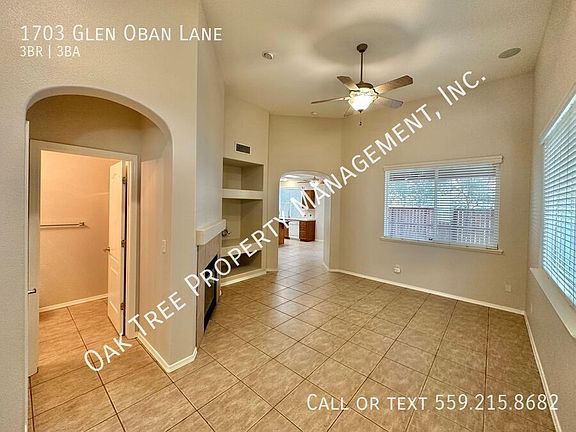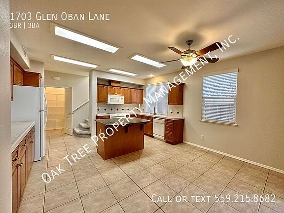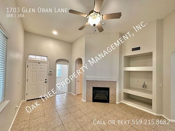 AVAILABLE NOW! Located within a Clovis gated community off of Shepherd and Flower, this charming two-story house features three bedrooms and three bathrooms, with two bedrooms located upstairs and one bedroom downstairs for added convenience. The cozy kitchen and living room provide the perfect space for relaxing or entertaining guests. The loft with a desk offers a great area for working or studying, while the private backyard is ideal for enjoying the outdoors. With new paint and flooring throughout, this home is move-in ready. This property is close to trails, restaurants, and shopping, making it the perfect place to call home. Schedule a tour today and experience all that 1703 Glen Oban Lane has to offer! 1-year lease. No pets! A refrigerator, washer, and dryer are provided for tenants use (no warranty). Fireplace is not included (no warranty). Yard care is included! Tenants will be responsible for all utilities including PG&E, water, sewer, and trash. READY TO APPLY? Close To Restaurants Close To Shopping Close To Trails Cozy Kitchen Gated Community Laundry Room Loft With Desk New Flooring New Paint One Bedroom Downstairs Private Cozy Backyard Three Bathrooms Two Bedrooms Upstairs Two Car Garage Two Story