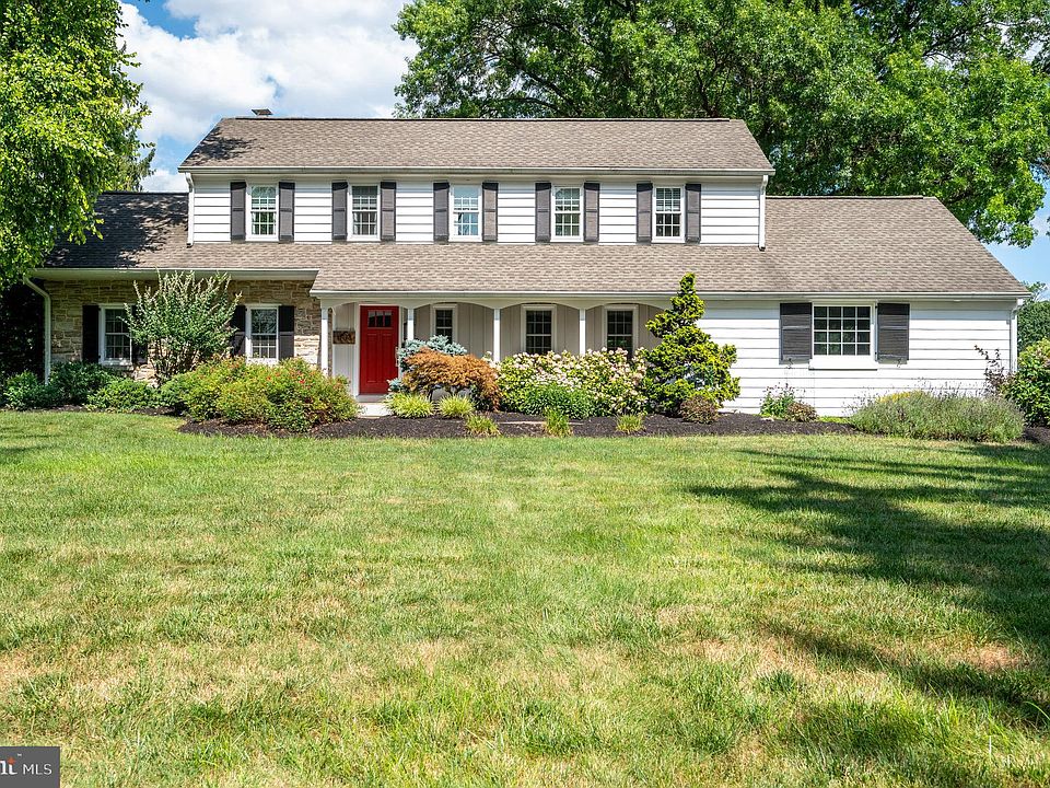 This beautiful, custom Paul Snyder built colonial home has been completely renovated top to bottom over the last 14 years. So much love and care has been poured into this home and you will see that during your visit. The main level is filled with natural light in every room due to the numerous amount of Pella windows. As you enter the foyer, there is a living room off to the left with exposed beams, a stone fireplace with hickory stained herringbone treatment above the mantel and framing the fireplace are double patio doors leading to the covered rear patio/deck. Down the hallway leads to a great sized storage closet, powder room and a separate dining room. One of our favorite spaces is the den/kitchen area which is where we spend most of our time. There is a sitting area, gas fireplace, built in cabinetry and windows galore! The kitchen has quartz tops, beautiful cream colored KraftMaid cabinets, stainless appliances, a large peninsula, pantry, gas slide-in range, marble subway tile back splash, under cabinet and recessed lighting and a great corner sink facing the side patio. On the upper level are 4 generously sized bedrooms, again with tons of natural light and refinished oak hardwood flooring throughout all of the bedrooms. The primary bedroom has a creative headboard wall with hanging side tables and lighting, crown moulding and 2 closets with updated lighting. The primary bathroom consists of a larger subway tiled shower stall, marble flooring, glass tile back splash and a large custom KraftMaid vanity and built in storage cabinet. The middle bedrooms are mirror images of one another, both having large closets with pull-out storage drawers. The 4th bedroom is very unique in that there is plenty of space for a bed, dresser, desk, seating, etc. A walk-through closet leads to a small room above the garage perfect for storage or a playroom. Crown and chair rail moulding complete the space. The hall bath has a tub/shower, porcelain tile flooring, glass tile back splash, a white subway tile shower and KraftMaid vanity. On the lower level is a finished space perfect for a secondary family room, craft room, home gym, office, etc. It has been freshly painted with new carpet, recessed lighting and built in cabinetry. The unfinished portion of the basement has recently been painted and drylocked, both windows sealed and houses the gas furnace, water heater, electrical panel, PEX manifold and steps to the outside via a bilco door. The garage and laundry room have also been refreshed this year with paint on all surfaces. The 2 car side entry garage has space for a workbench and storage by the man door. The garage leads directly into the kitchen for easy unloading. The home sits perfectly on the .99 acre lot. A large level front yard with a meandering paver walkway and garden leads to the front porch. Out the rear door of the home is a covered deck/patio with reclaimed barn wood ceiling, crown moulding, a stone fireplace and also one of our favorite spaces. A paver patio extends the outdoor entertaining space and gardens stretch behind the home and the patio. Trees line the perimeter of the yard with a stunning Copper Beech sitting at the top of the slope. The rear yard is completely fenced with wood split rail perfect for pups. Behind the home is the 12th green of the Berkshire Country Club golf course and a fantastic view! The right side patio is very charming and leads directly into the kitchen. A vinyl shed in the right rear corner is perfect for the tractor and garden tools. This home is in a great location close to Routes 12 and 222 right off 183 in Bern Twp. The neighborhood is so unique in that every home looks different, there is access to the Grings Mill walking trail and it's one of the best locations in Berks County!
