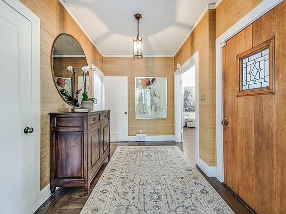 This English Tudor Revival home, built in 1928, is located in the Mt. Carmel neighborhood, surrounded by bespoke homes built in the same era. The home features: formal entry, beautiful grand living room with high ceilings, built-in bookshelves, and a fireplace with a gorgeous custom crafted mantel, an elegant formal dining room, baseboards, crown moldings, and window surrounds of extraordinary craftsmanship, newly refinished hardwood floors. Updated kitchen with garden window, stainless appliances, tile counters, an abundance of cabinetry, and an adjacent breakfast room. Primary suite with 2 closets, one a walk-in. Bathroom with beautiful marble countertop and floor. There is a second main level bedroom, & a laundry room. Upstairs, a bathroom & two bedrooms plus the attic- a huge space with myriad possibilities. Outside, mature landscaping abounds. The yard has a patio area, swimming pool, lawn area. Near the downtown heartbeat of Redwood City, parks, easy access to commute routes.