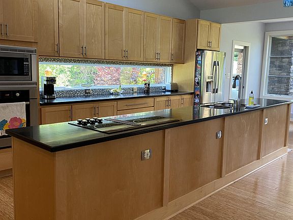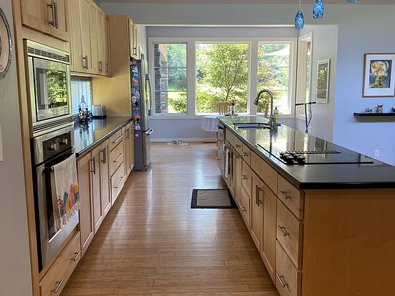 Custom built contemporary home with 4 bedrooms and 3 1/2 baths. Hardwood Bamboo flooring, Nine foot ceilings plus vaulted with clerestory windows, five skylights, large deck with wood burning fireplace, one acre lot, highly efficient Geothermal HVAC system, Marvin windows and doors, sealed crawl space. Office could be 5th bedroom or guest room.