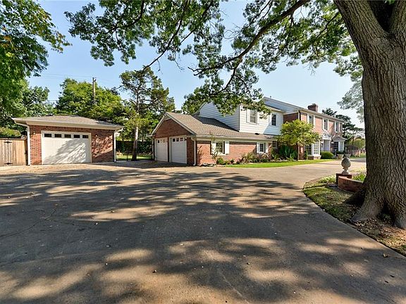 Classic red brick two story traditional home in the heart of Nichols Hills. Very quite street. Custom built two owner home. Entire home and surrounding brick landscaping are rock solid and very well maintained. Spacious Entry with spiral stairway. Formal living with bay window, fireplace, oak floors, access to sun porch. Formal dining room with bay window and oak floors. Gorgeous family room with oak floors, wet bar, fireplace, bay window, custom wood work with built in office nook and storage. Large 3rd living area, great play/game room with sliding door to the side yard. Stunning kitchen remodel with oversized island, all viking appliances. Beautiful breakfast room off of kitchen with built in hutch. Back stairway comes from kitchen. Upstairs are all five beds and three baths, with new carpet and paint throughout. Side entry Garage. Lots of extra parking space in long circle drive. New windows and HVAC system. New-build detached garage with office, bath and patio. Owner Licensee