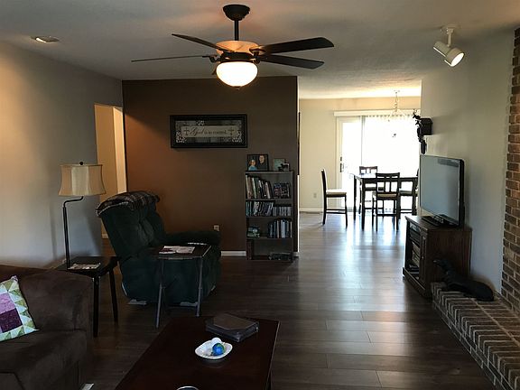 Beautiful ranch with 2-3 BR, 2 Baths, 2 car garage, utility/mud room fenced yard with shed. New just installed wood lam. floors in LR, DR and hall, Newer kitchen cabinets, Solid Surface kitchen countertops, under mount sink and appliances are 8 months old, All appliances will stay but left as is. Garage door opener 2 yrs. The master bedroom is bedroom 2 and bedroom 3. The wall can be put back in to make it a full 3 BR's again. Large 2 car garage with storage and newer furnace and air. master Bath redone 2 yrs ago. Relaxing fireplace. This home is a must see it needs nothing and is move in ready. ** 3RD wall was removed and the room size if put back in 10x11.