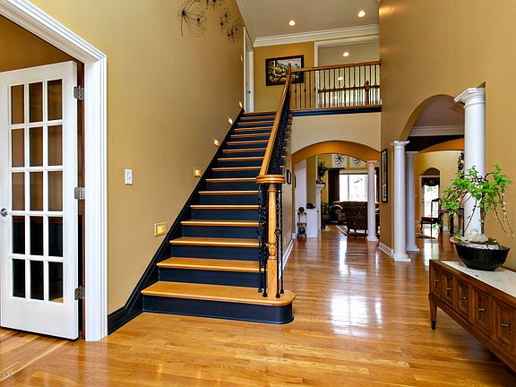 Fantastic 6 BR, 4.5 Bath home on 1.69 ACRE culdesac lot with trees and open space! Open floor plan features hardwood floors, 1st floor office, open columned dining room with doors to front porch and vaulted Gathering Room with fireplace flanked with bookcases and rear wall of windows overlooking rear yard views! A large Gathering Size kitchen features tile flooring, an abundance of stained cabinetry, granite countertops, stainless appliances, bayed breakfast area with windows and door to an expanded deck. The kitchen opens directly to a ''Hearth Room'' with a 2nd fireplace with rear windows and views! 1st floor Owners suite it king size with great wall space and opens to a spa inspired bath with tile flooring, double vanities, jetted tub, shower and walk-in closet! The 1st level also includes a mud room with custom built-in cubbies, closets and laundry room. An open turned staircase leads to the 2nd level featuring 4 large bedrooms with great closet space, 2 full baths and 2nd floor laundry! The finished walkout lower level is updated with CoreTech flooring in the entertainment area with a wet bar featuring a barrel rounded accent wall, 3rd fireplace, windows and doors to the lower level patio with a covered space under deck! There is also new carpet in the game area and 6th BR plus a tiled 4th full bath with updated vanity!! This home offers many upgrades, ceiling speaker system in several rooms, oversized 3 car garage, 1st and 2nd level laundry and a culdesac lot with private and treed views! Longwoood offers a clubhouse, pool and tennis facility as part of the neighborhood and is conveniently located across from the North Oldham County School Campus!!