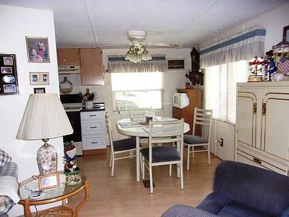 This is a well kept, beautiful 3 bedroom 2 bath home with inside laundry. Newer windows and A/C. Large rooms. Nice private yard. This is a home one must see. Beautifully furnished. Ready to move in. Do not let this one pass you by. Low lot rent includes water sewerage, trash and lawn care.
