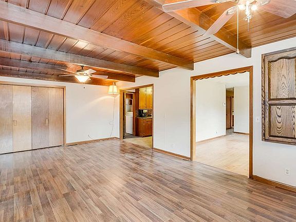 Gorgeous REAL WOOD Vaulted Beamed Family Room Ceilings!!! Really Nice and clean 3 bedroom 1 1/2 Bath. New Paint and all 3 bedrooms have refinished REAL OAK hardwood. Great floor plan!! Master has a Walkin closet Jack and Jill style, with a door- to Hall bath. quite convienant. Unique. I like it!! House also has HVAC with a humidifier. The large Family Room has new Dark Wood laminate with attractive gas start woodburner fireplace, currently has a gas log. Great corner lot and PRICED TO SELL. Chain link fenced backyard. Deck off family room. Other side of the family room is your seperate laundry room and 1/2 bath, that goes on out to the 2 car attached garage. Built in 1957. This is a gem of a house. Great place to call your new home. Built in stove and range, and dishwasher and refrigerator stay. Garbage disposal included. Newer ( 2 year ) 50 gallon HOT WATER tank Two car attached garage garage. Great trees, too! Easy to show!!! So many new shops and stores for your convience on 13th. Nice home. Cozy.