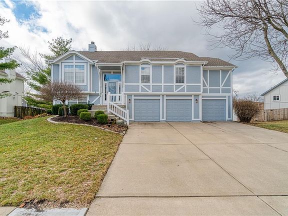 WOW! Be the envy in the neighborhood! RARE & DEEP 3-CAR GARAGE plus a SUN ROOM overlooking LG fenced backyard plus a WALKOUT BSMT. Garage offers plenty of room for all your toys, cars, boat, w/storage space for mowers, bicycles & motorcycles. Open floor plan w/vaulted ceilings. Living Room w/fireplace and bookshelves. Large kitchen w/granite countertops, beautiful backsplash and an island. All stainless steel appliances including refrigerator stay with property. Seller had exterior professionally caulked and painted and dry rot repaired Sept 2022. Windows professionally cleaned inside and out. Spacious primary bedroom and full bath and a large WALK-IN closet. Lower level features additional family room/rec room with access to a covered patio. Fenced-in backyard has plenty of room to play. Very well-maintained and cared for. Built-in workbench in the garage remains with property. Convenient access to highways, retail and Olathe schools.