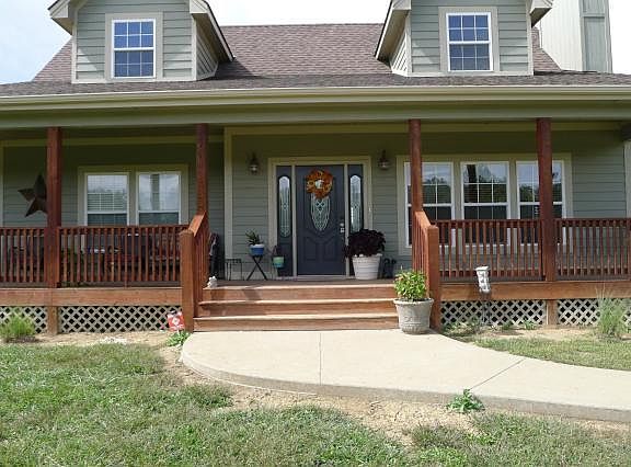 Great 1 1/2 Story Home on Acreage! This 3 Bedroom, 3 Bath home offers newer paint, carpet and finished Walkout Basement! Kitchen and Dining have hardwood floors. Nice wrap-around front porch overlooks beautiful acreage and has access to Living Room and Master Bedroom. A Must See for ALL acreage buyers-Shows very well!!