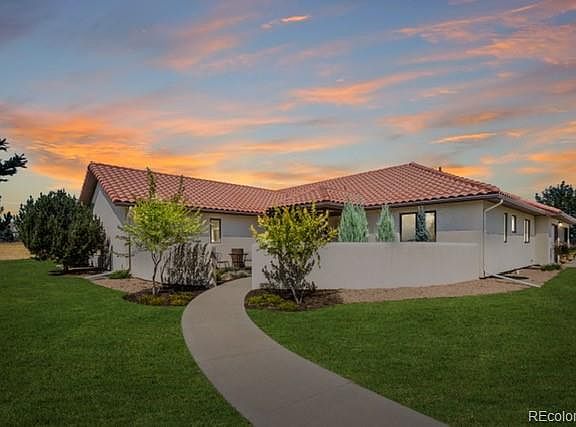 Enjoy the quiet retreat of this meticulously maintained spanish-style custom ranch home on over 7 acres of horse property in unincorporated Weld County. Artfully updated with designer elements, gleaming hardwood floors, and a gorgeous Restoration Hardware chandelier, everything from the expansive great room centered around a flagstone fireplace to the large windows calling you outdoors makes this an entertainer's dream. This bright and spacious home offers majestic mountain views of Longs Peak and the Flatirons and is minutes to downtown Erie, I-25, parks, trails and so much more. The property comes complete with a 1400 sq ft barn, outdoor arena, and fenced pasture, so bring your vintage car, RV, outdoor toys, and animals, because there is enough room for everything! The master bedroom is large and offers a beautifully remodeled en-suite master bathroom incorporating timeless finishes.