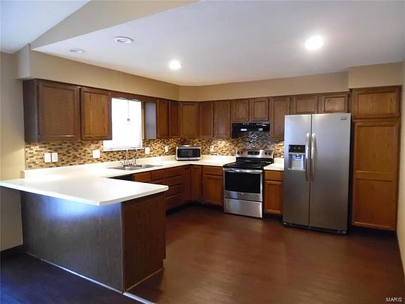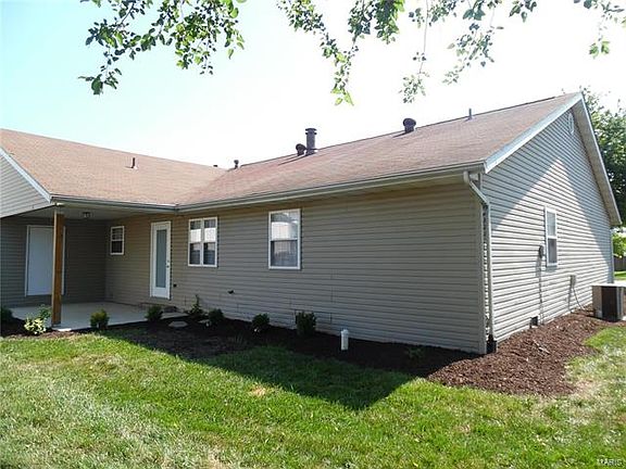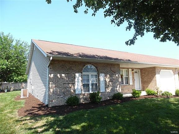Check out this updated villa home with an awesome see-through gas fireplace between the living room and dining area. This very comfortable villa has large bedrooms and plenty of closet space. The villa has vaulted ceilings, a great open concept, and convenient laundry room. Kitchen has newer stainless steel appliances, back splash, and updated lighting. Both baths have new vanities and lighting. You can relax on the covered front porch or the patio out back which includes a storage closet. Garage has Smart Control Garage Door Opener for Smartphone Control. All appliances and televisions stay. Seller is offering a one year home warranty through HMS. This location is excellent, close to SWIC, SAFB, and just minutes to O'Fallon. All information to be verified by buyer.