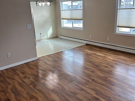 Clean quiet area, large back yard, off street parking, Heat/Water/trash paid by landlord. Conveniently located near airport, shopping and quick access to town, This is a four plex with two up and two down. Unit is a upper-level unit, two bedrooms, one bath. All bedroom windows have black out shades. Living /Dining area have shades that open top down or bottom up. New paint & vanity in bathroom, professionally cleaned after last tenant moved out. Vinyl plank flooring in living room, carpet in bedrooms. Brand new dishwasher. We do allow pets on approval, for dogs it is size and breed specific. We will require a non-refundable pet deposit of $300. Cats TBD Back yard butts up to Fish creek, it's just a little trickle but makes for a nice setting in the summer. On site coin op laundry, washer and dryer were replaced less than 12 months ago. Renter pays electric, approx $40/ month. Landlord pays heat, Water & trash. Recycling is offered on site. Landlord provides lawn care and snow removal.