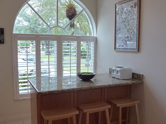 This beautiful villa is immaculate and well-maintained. It boasts high arched windows, volume ceilings and skylights making this home light and bright. An upgraded kitchen has a custom built island with seating and deep drawer storage, granite countertops and a pantry. Home is equipped with plantation shutters and accordion hurricane shutters. A must see for sure!