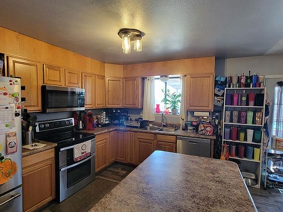 This home will certainly catch your attention with four bedrooms, two bathrooms, kitchen, living room, family room, dining area and den. The updates in 2019: new kitchen, new flooring, new interior paint, new 6 panel doors and new HVAC. Notice the chandelier, ceiling fans, backyard play set, privacy fence covered deck and open patio.