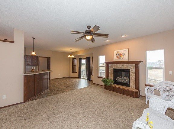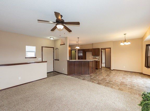 Spacious 3BR 2BA ranch. Covered front porch. Living room with fireplace (gas). Dining room with sliding doors leading out to deck. Kitchen includes vaulted ceilings, breakfast bar & huge walk-in pantry. Main floor laundry with shelves & hanging rod. Master Bedroom (split bedroom plan) includes 2 closets (one walk-in) & master bath with Jacuzzi tub & separate shower. Full unfinished view-out basement with rough in bath. 3 car garage, wood fence, sprinklers, deck. All info deemed reliable but not guaranteed.
