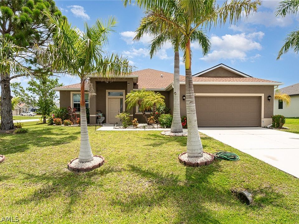 Welcome to your Dream Home in Sunny SW Cape Coral!! This spacious Pool Home is situated on an oversized corner parcel of land!! Offering ample space for the entire family with 4 bedrooms/3 full bathrooms plus an office/den or 5th bedroom if necessary. Located in a non-flood zone, which allows peace of mind to the new homeowner. Conveniently located close to shopping, restaurants, schools, medical, beaches, golfing and various recreational activities. The fenced in yard gives you complete privacy while floating in your above ground salt-water pool!! (This style pool offers you great savings!!) It's the perfect spot to unwind with family or friends for hosting barbecues and enjoying the Florida Sunshine in peace and tranquility. Brand new roof as of 2023. Home Warranty is transferrable. Call now for your private tour and more information on this great home!!