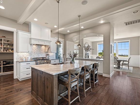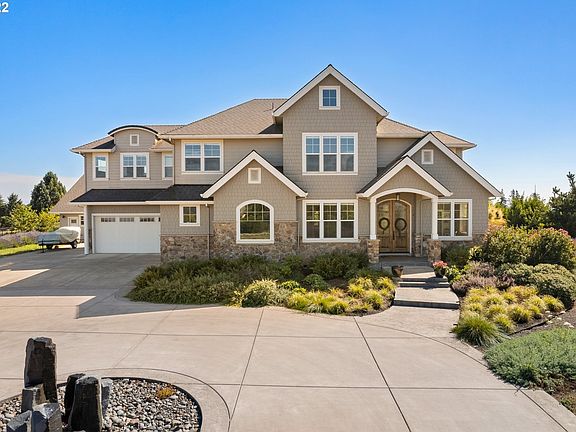 Lots of love poured into this custom home w/ incredible Mt Hood, St Helens, Mt Adams & valley views! This 4.72 acre property boasts the 2012 Street of Dreams winner-Calistoga flrplan, pool/hotub, 1 bed/1 bath main level living guesthouse w/garage, kitchen & bonus room upstairs. Main home gourmet kitchen is set for the entertaining chef w/ 2 islands, 2 ovens, 2 dishwashers, walkin pantry & fridge. APPRAISED $3,690,000-LOW TAXES-farm deferral, BUYDOWN Op, top schools, 5 min to Historic Willamette.