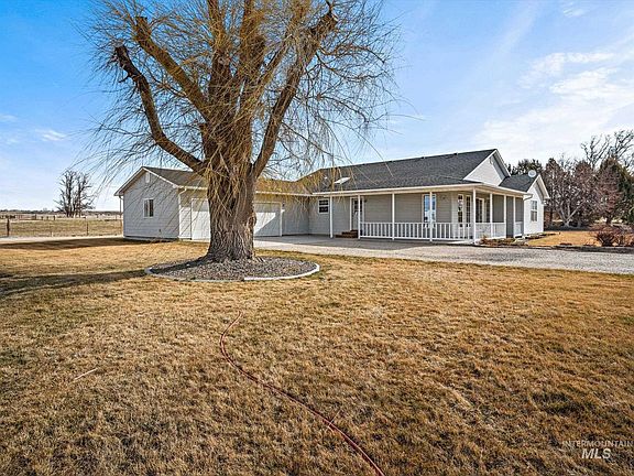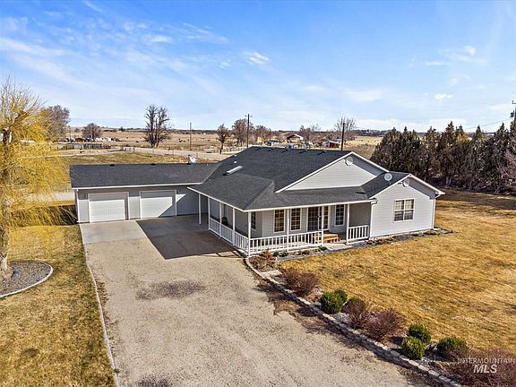 If serenity and sounds of the countryside are what you have been looking for, then look no more! This custom home sits on a level 4.5 acres that has an available split and building permit. Bring your livestock, hobbies and more to this quaint parcel just outside of Melba. Oversized bedrooms have closets with built-in shelving for plenty of storage. Just off the laundry room is an additional space for storage or a special nook for personal space. Additional cabinetry and deep sink in the laundry room as well as skylights in the kitchen and bathroom for extra light. This open floor plan gives you plenty of room for entertainment as well as an abundance of light with all the windows and open passageways. Shop features a kennel option for the pets as well as a separate tack/office/storage section. Shop has electricity and plenty of cabinet space for storage. Furnace, heat pump, and roof are 2 years new!