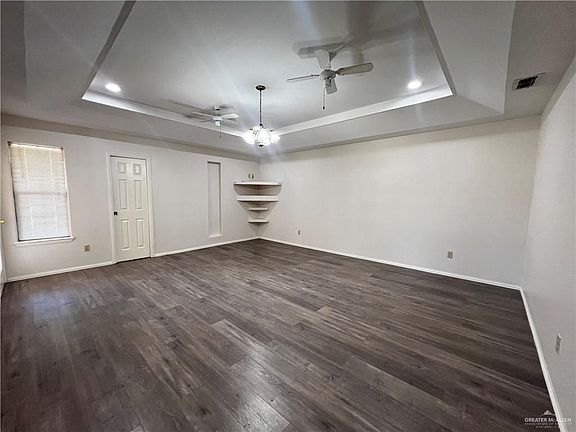 This amazing home in Palmhurst is located on over 3 acres-privacy & space to grow! The one story home has been recently renovated. The layout includes 3 bedrooms & 3 baths & 3477 square feet of living space. Enjoy 2 dining areas, one include a built-in china hutch. There is a large living room with built-in cabinetry, a wet bar, built-in bar area & french doors. The large kitchen features black & stainless steel appliances & a bay window eating area with view of the acreage. Large primary bedroom with bath that includes a garden tub, shower, & 2 separate vanities. Enjoy tile & vinyl flooring throughout with coffered ceilings, ceiling fans, & built-in shelving. The backyard patio is perfect for relaxing & enjoy the privacy.