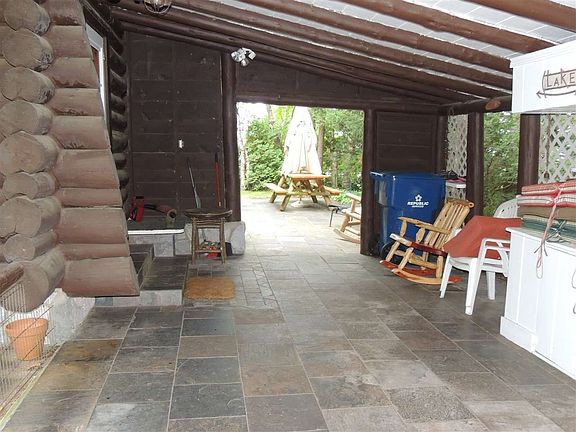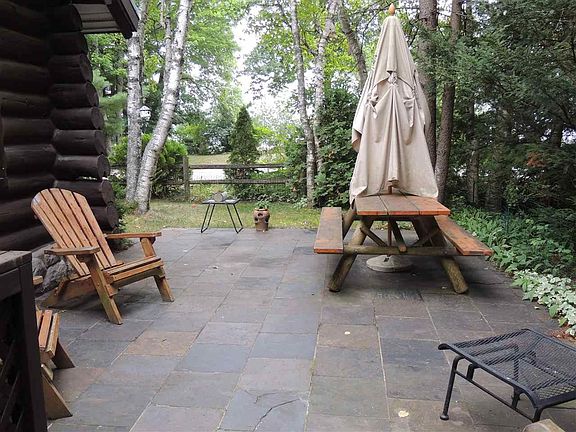 HIGGINS LAKEFRONT: Two log homes with sandy beach. Main home is a beautifully maintained log with many updates. Steel roof with 4 foam insulation, remodeled kitchen, bath & utility rooms, high efficiency furnace plus heat pump for central air. 3 bedrooms, private 14x50 slate patio much of it covered and overlooking Big Creek. Guest house is new construction with log exterior & gorgeous interior of knotty pine walls & ceilings with attractive hardwood flooring, granite counter tops, stainless steel appliances, vaulted ceiling, 1 bedroom plus loft area, attached finished garage. 50' of lakefront & property widens to 100' with approximately 600' of depth along Big Creek. Great setup for extended family or income property. Two sheds, one includes the 3rd bath.