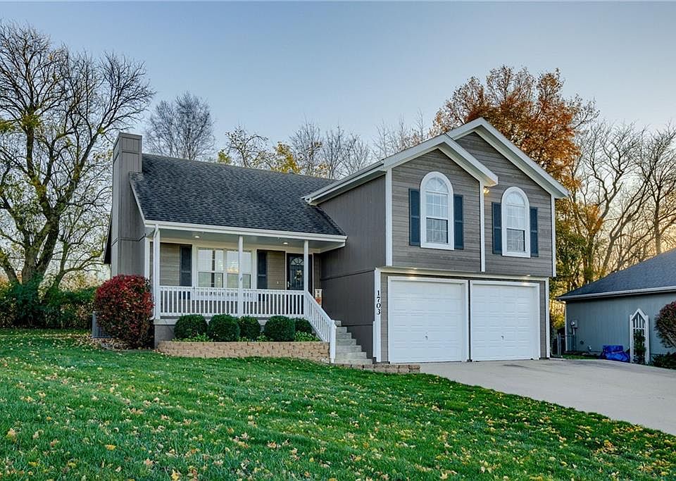 Welcome to a beautifully updated and cared for home in the brilliant Lee's Summit School District! This home has the perfect spot in the neighborhood, nestled into a half cul-de-sac and backing up to nature. Built with upgraded features from the original plans, you'll discover higher ceilings, more windows and a laundry ROOM instead of laundry closet. You won't find another home in the area like it! The main level boasts a spacious kitchen with beautifully stained cabinets, a brand-new Moen faucet, and a large pantry, all complemented by stunning hardwood floors and vaulted ceilings that create an open and inviting atmosphere. The living room in the lower level features modern LVP flooring and a half bathroom to create a perfect area for entertaining guests. Rest assured knowing the furnace, air conditioner and water heater are younger in age and working to provide you modern comfort in your home. Retreat to the master suite with its private bathroom and walk in closet, plus coffered ceilings wired for adding mood lighting to set the ideal ambiance. Brand New paint in the master bathroom! The home offers plenty of flexibility and storage, including a 4th non-conforming bedroom in the basement and ample storage space for organization. Find even more opportunity for storage in the 12x8 shed. This home is truly a must-see!