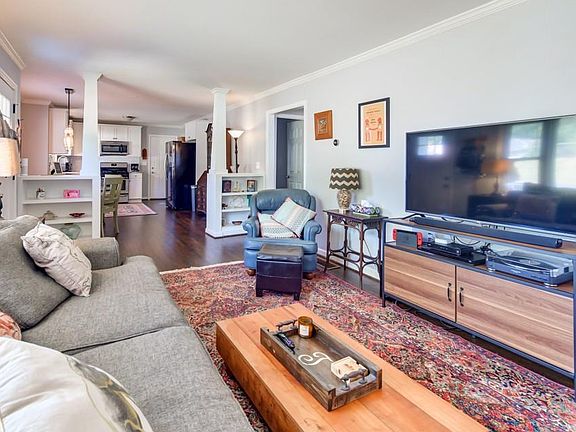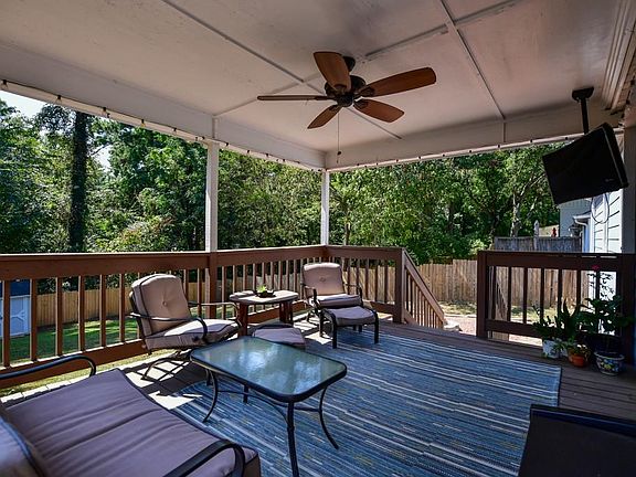 Sited on a tree-lined street steps from East Atlanta Village, this idyllic Intown bungalow boasts beautifully renovated interiors! An open family room welcomes you, bordered by built-in bookshelves and striking columns. Hardwood floors lead into a bright, white kitchen with subway tile backsplash, stainless steel appliances, and granite countertops. Outside, a wrap-around covered deck overlooks a large, fenced backyard perfect for gathering with friends and family!